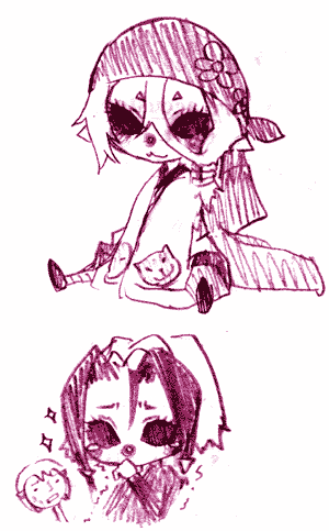 拍手を送る 気づいたら手が動いてたんです。 私じゃないんです。手がやったんです。 ・・・っていうアニメがあったなぁ。 オダジマンが某メダカ先生にしか見えない。 2008.1.25.2.gif こわいよーってしてたネウロが可愛かったもので・・・。 |